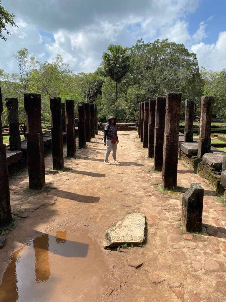 Après cette visite du rocher du Lion, nous sommes partis découvrir un vaste site archéologique du Sri Lanka. Il s’agit d’une ancienne capitale datant du XIIe siècle, malheureusement incendiée au XIIIe siècle. C’est dommage, car elle devait être magnifique à l’époque.
