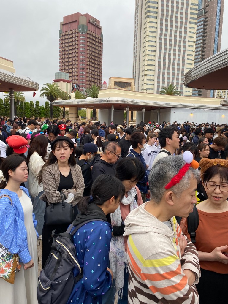 Une fois les valises déposées, nous avons sauté dans le métro pour atteindre le parc avec la ligne JR Yumesaki. Heureusement, le trajet est assez court et nous sommes donc arrivés à la station Universal vers 6h15. Dès la sortie, nous avons foncé à travers Universal City. Notre objectif : être les premiers à entrer ! Ce sprint a porté ses fruits, car à peine dix minutes après notre arrivée, une foule de plus de mille personnes nous a rejoints.