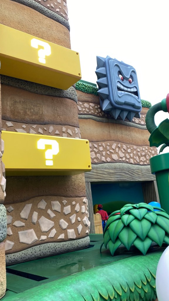 Dans ce monde de Nintendo, il y a trois attractions intéressantes. La première, Donkey Kong, est sympa mais la file d’attente est souvent un vrai problème, car il y a au mieux 3h de queue. Nous avons commencé par celle-ci et, comme nous étions les premiers, nous en avons bien profité.