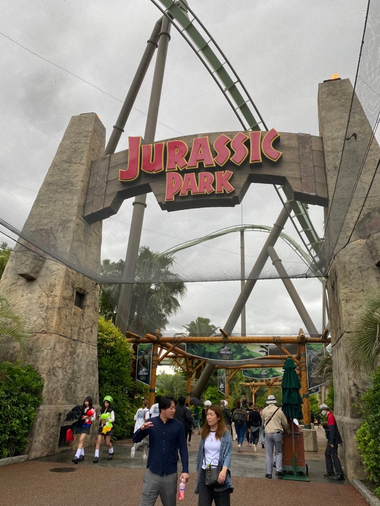 Après le monde de Nintendo, nous sommes allés au monde de Jurassic Park, où se trouvent deux attractions intéressantes. La première, et pour nous la meilleure, est l’attraction du Ptérodactyle ou Flying dinosaur. Vous vous retrouvez la tête la première, un peu allongé, et les sensations sont très fortes ! Il y a deux loopings : l’un où vous êtes à l’intérieur du looping, et l’autre vers l’extérieur. Je pense que c’est la meilleure attraction du parc.