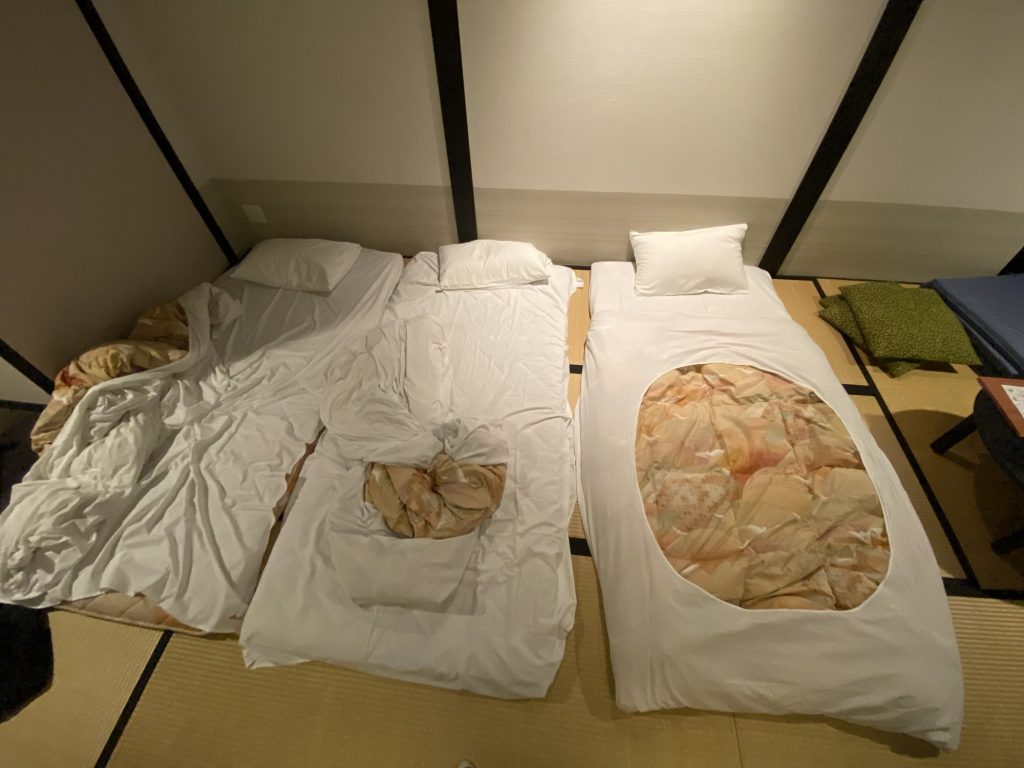 Une fois arrivés à l’hôtel, nous nous sommes réjouis : il était exactement comme sur les photos, vraiment magnifique et dans le style ryokan, cette auberge traditionnelle avec ses tatamis et ses futons.