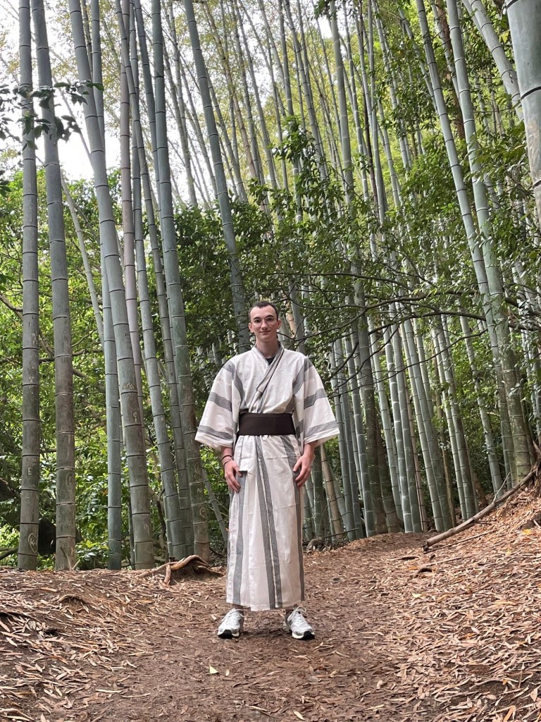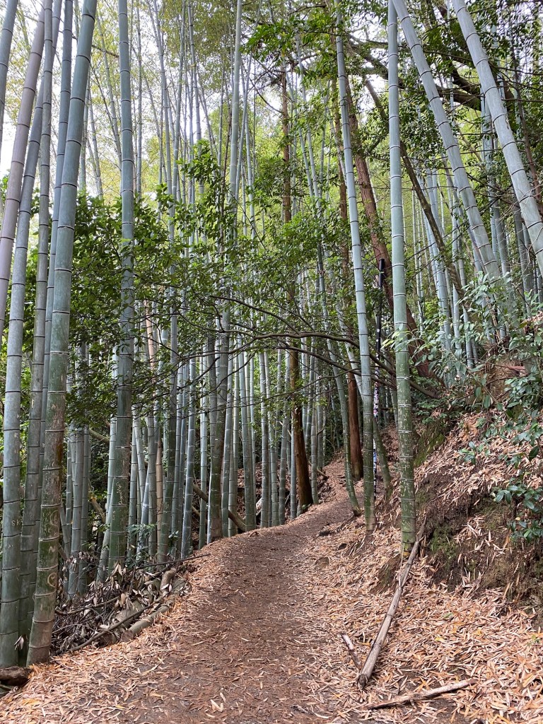 À un croisement, nous avons pris un chemin moins fréquenté et sommes tombés sur une forêt de bambous inattendue. C’était vraiment joli et paisible. Seul bémol : des gens avaient gravé des choses sur les bambous, ce qui est dommage.