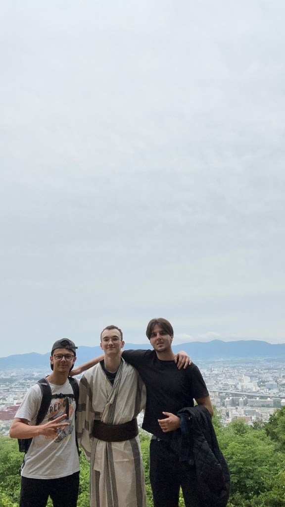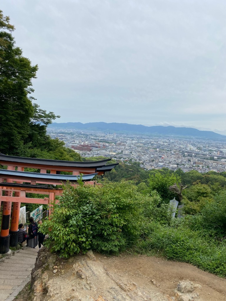 Nous avons continué à grimper jusqu’à atteindre enfin une zone dégagée en retrouvant le chemin principal. La récompense était là : une vue imprenable sur tout Kyoto s’offrait à nous ! Le panorama était incroyable.