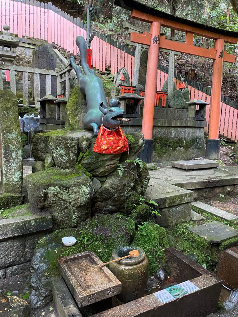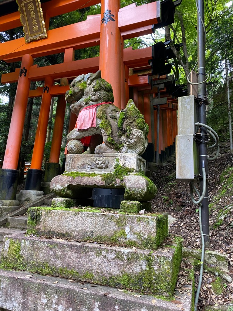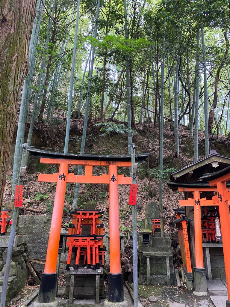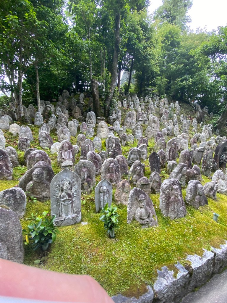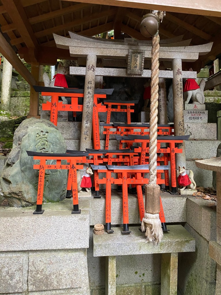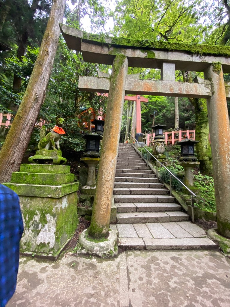 En montant, on croise plusieurs petits temples, tous entourés de ces o-tsuka. Ces petits sanctuaires sont vraiment mignons, et on remarque facilement la différence entre ceux du bas, à l’air libre, et ceux nichés dans la forêt humide vers le sommet. Ces derniers sont recouverts de mousse, ce qui leur donne une atmosphère très particulière. Le décor m’a fait penser plusieurs fois aux films de Ghibli, c’était magique !