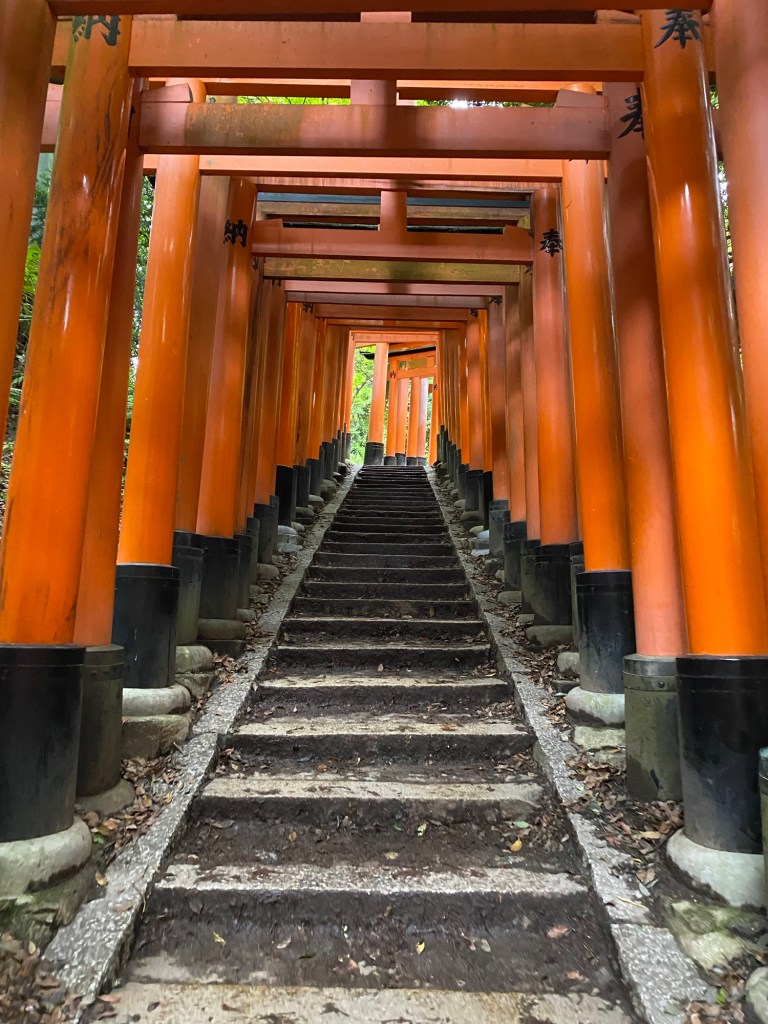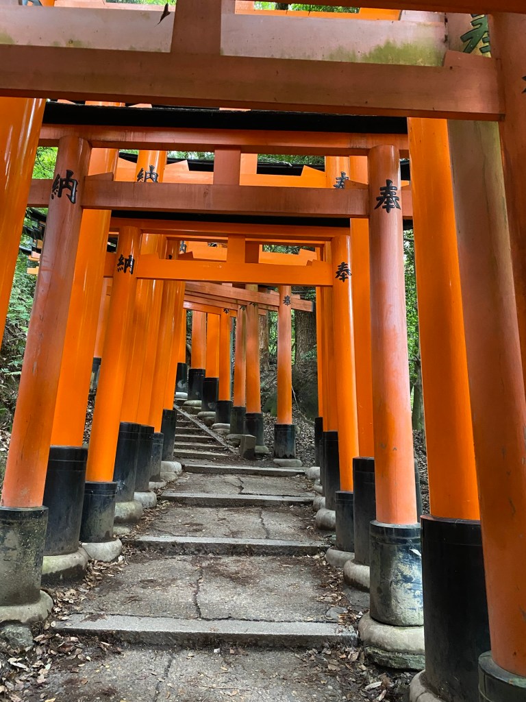 Après cette petite pause photo, nous avons repris notre montée. Au final, ce sont plus de 50 minutes d’ascension avec une multitude de marches, un vrai défi ! Mais le spectacle est magnifique : on traverse un nombre incroyable de torii, ce qui rend la marche unique.