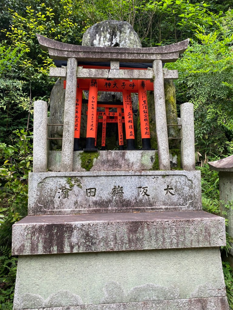 Sur le chemin, on découvre des stèles intrigantes. Appelées « o-tsuka », ce ne sont pas des tombes, mais des offrandes votives (des objets déposés dans un lieu sacré). Elles symbolisent la gratitude ou des demandes à Inari, la divinité du riz et des récoltes. Ces stèles sont souvent offertes pour un souhait ou en reconnaissance de prières exaucées.