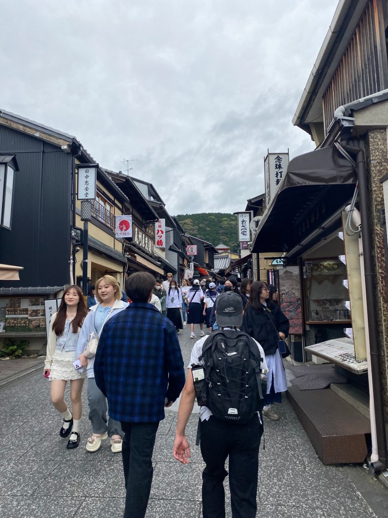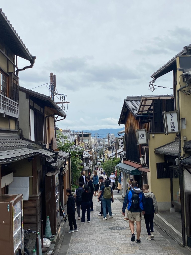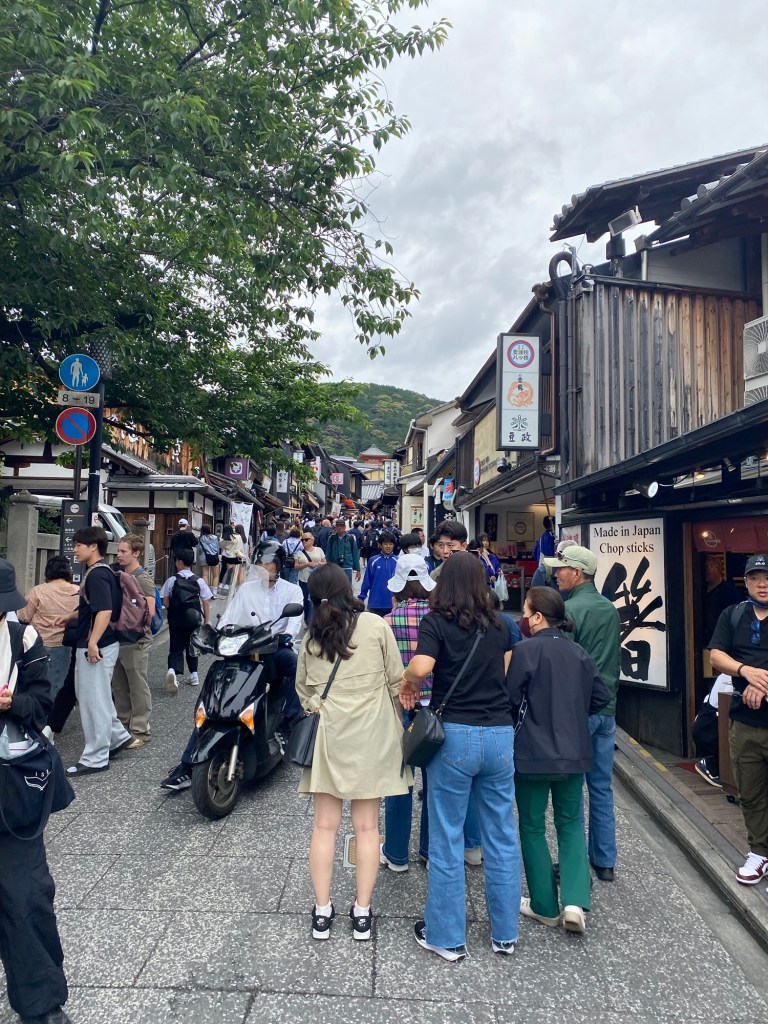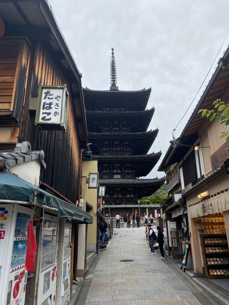 Pour atteindre le Kiyomizu-dera, nous avons emprunté la rue la plus célèbre de Kyoto. Elle est souvent bondée, mais son charme est indéniable : on y admire une magnifique pagode en bois qui se dresse au loin. Le spectacle est superbe, même avec la foule !