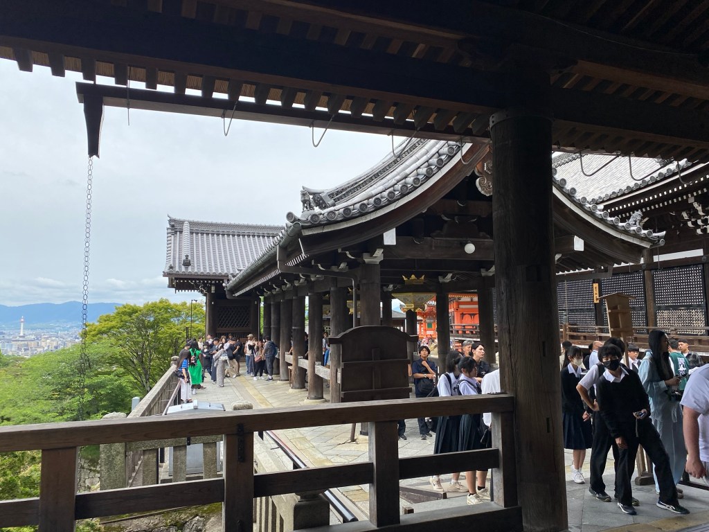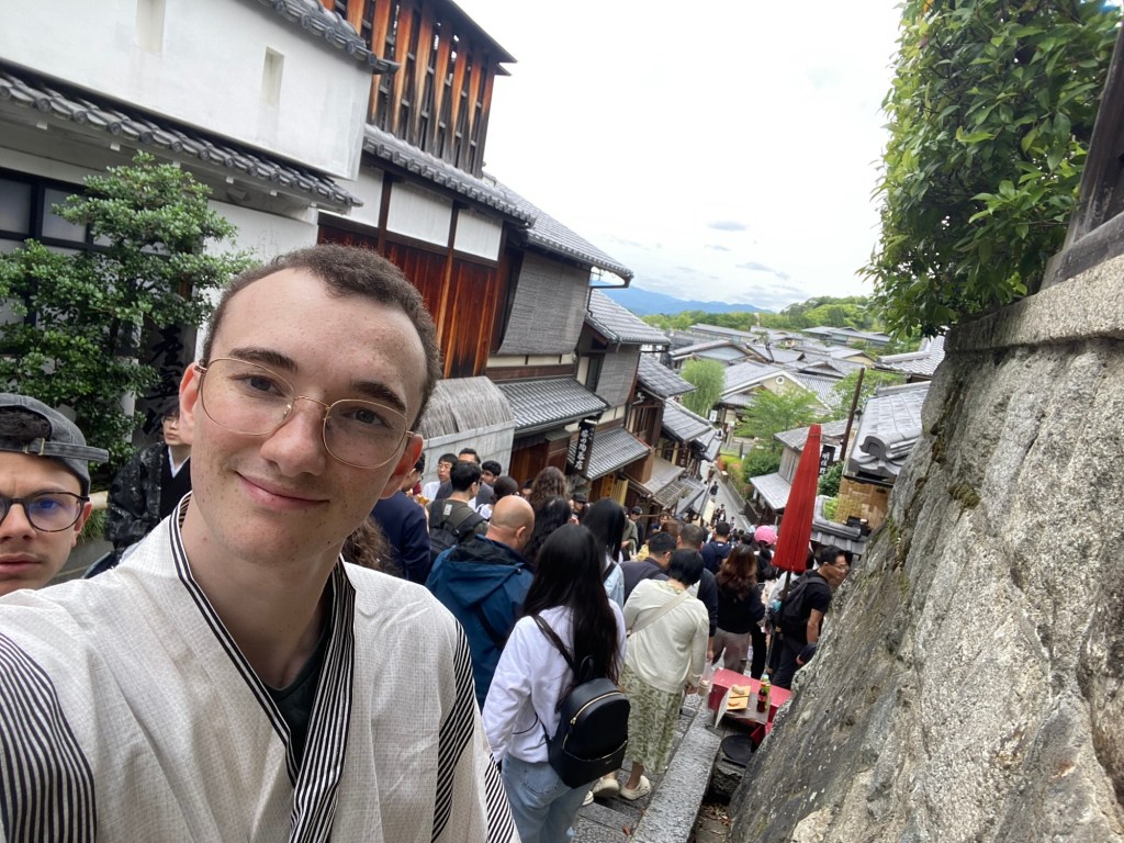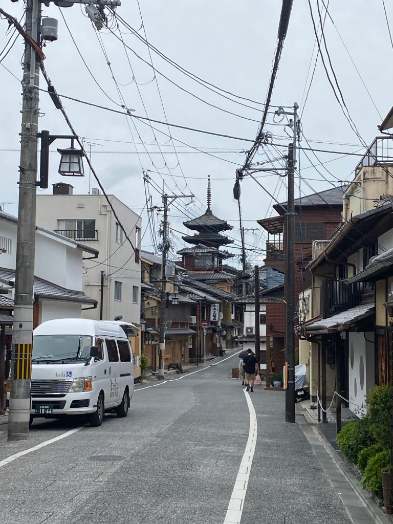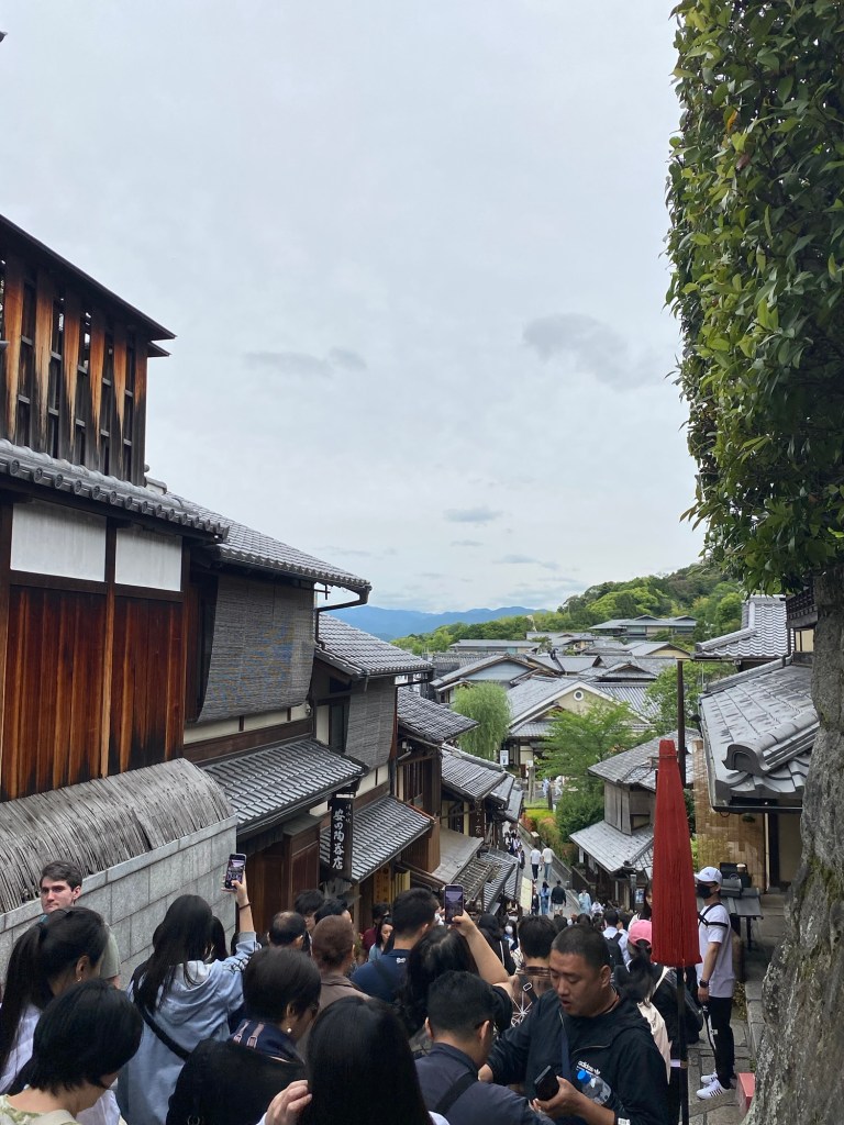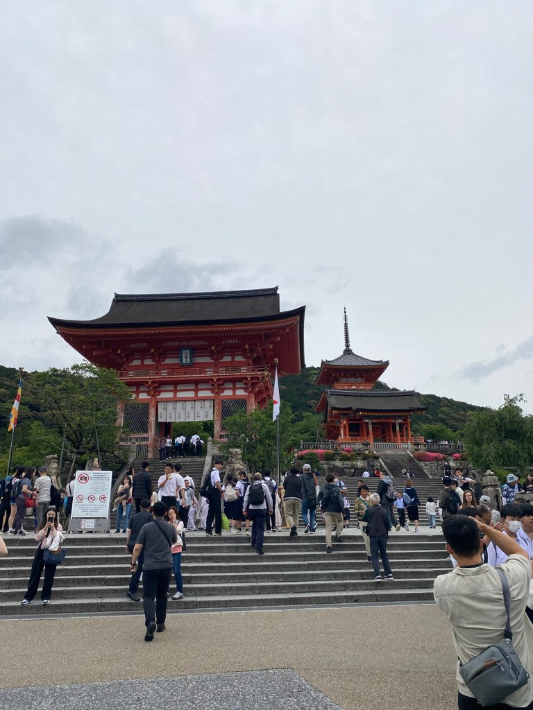 Pour atteindre le Kiyomizu-dera, nous avons emprunté la rue la plus célèbre de Kyoto. Elle est souvent bondée, mais son charme est indéniable : on y admire une magnifique pagode en bois qui se dresse au loin. Le spectacle est superbe, même avec la foule !
