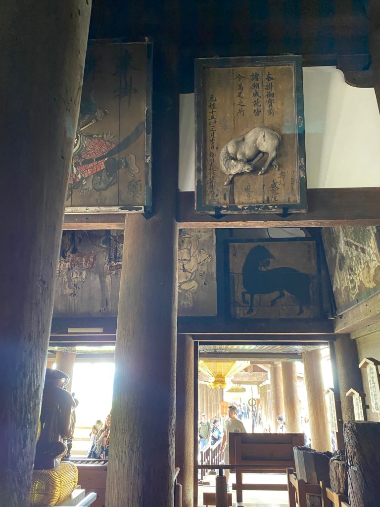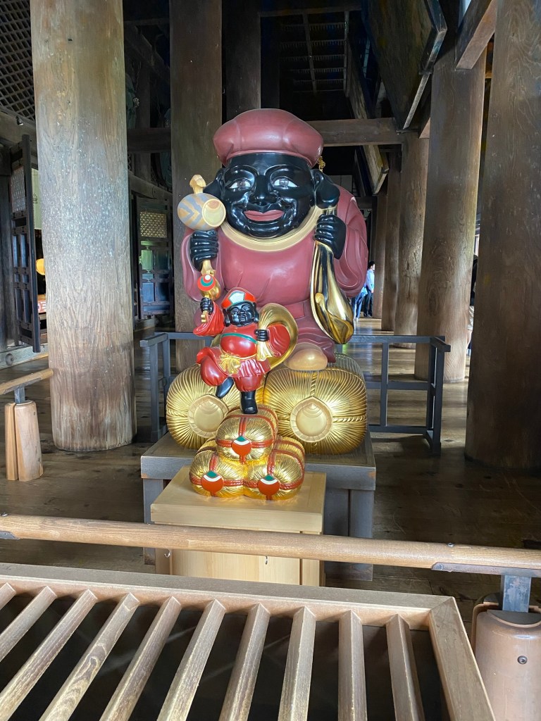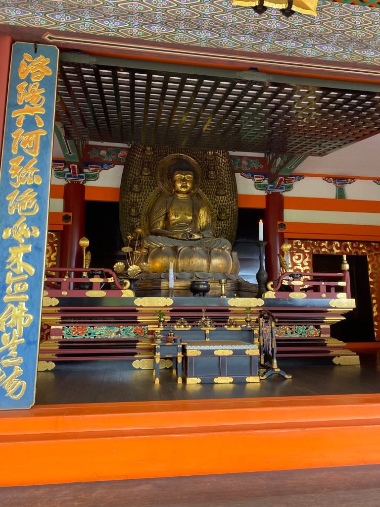 L’entrée du temple est très belle, avec un rouge éclatant et de magnifiques dorures. Mais si on continue un peu plus loin, on découvre le temple principal, une structure en bois splendide. On voit bien qu’il est ancien, mais il est incroyablement bien conservé.