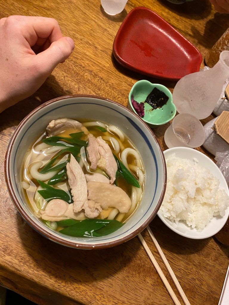 Après notre session shopping, nous sommes rentrés à l’hôtel pour nous reposer un peu avant de ressortir dîner. Ce soir-là, nous avons testé une autre recommandation de l’hôtel : un restaurant spécialisé dans le udon (sortes de pates) et le soja. Et c’était vraiment délicieux !
