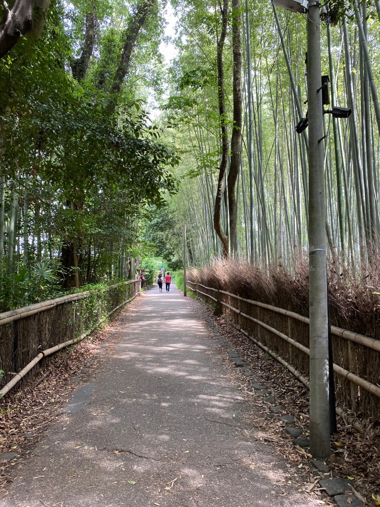 Nous sommes arrivés en métro, ce qui nous a déposés directement à côté de la forêt de bambous. Après seulement cinq minutes de marche, nous étions au cœur de cette magnifique forêt. Il était 9h15, et contre toute attente, il n’y avait pas énormément de monde ! Nous avons donc pu profiter pleinement de son ambiance calme et détendue.