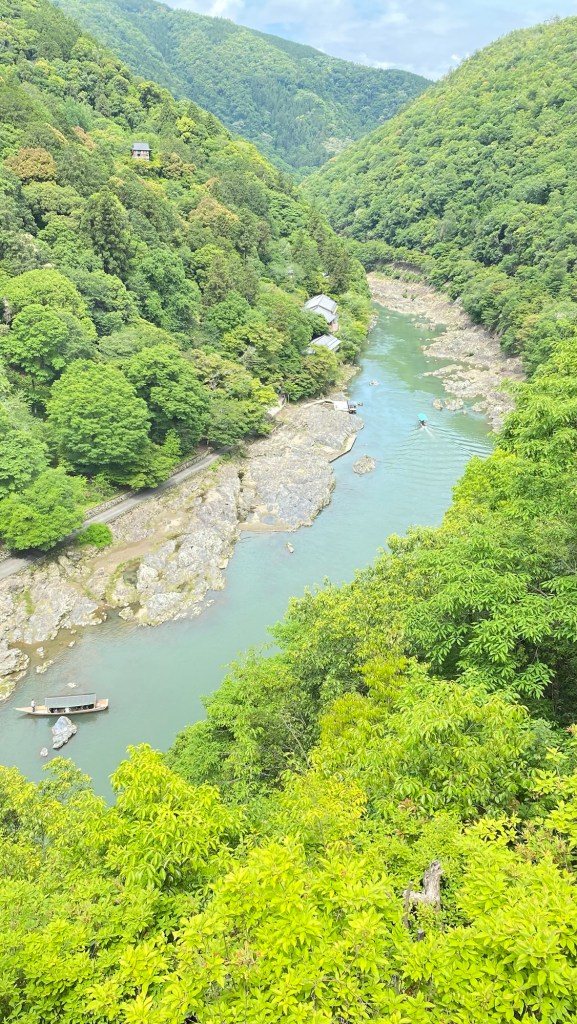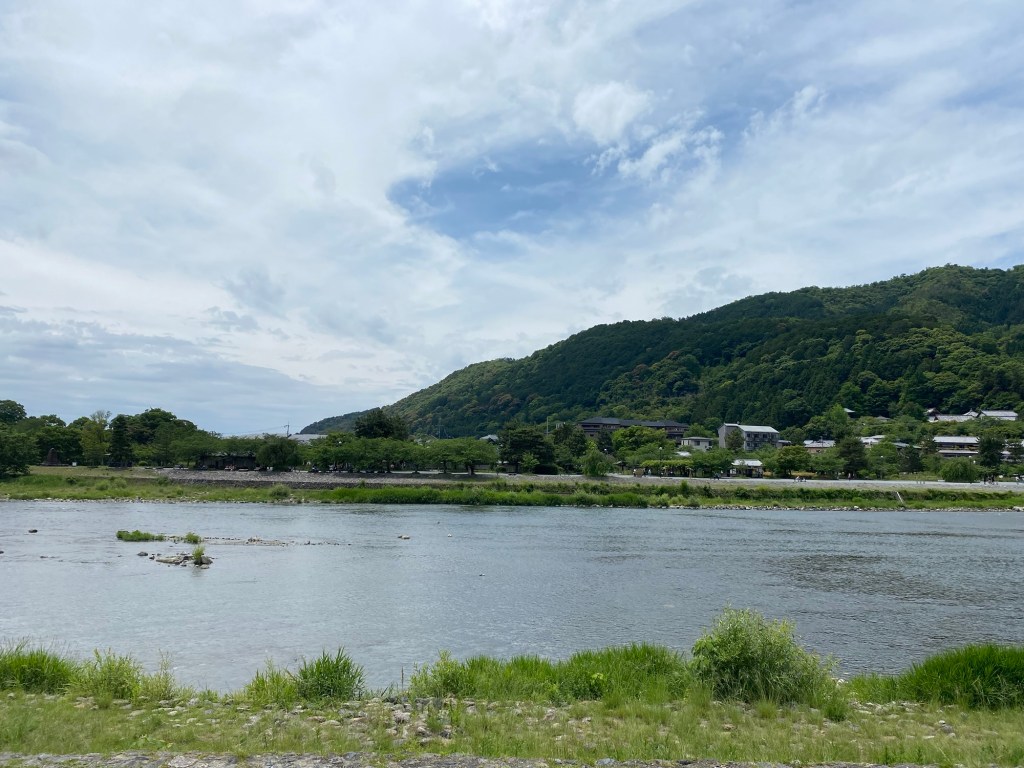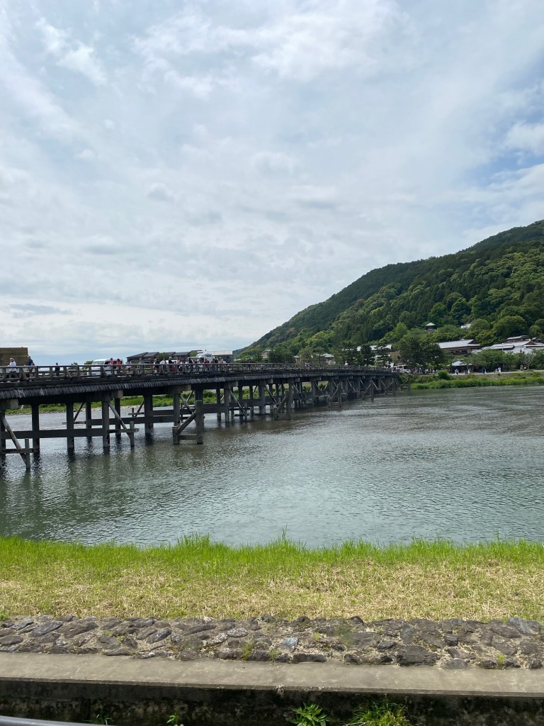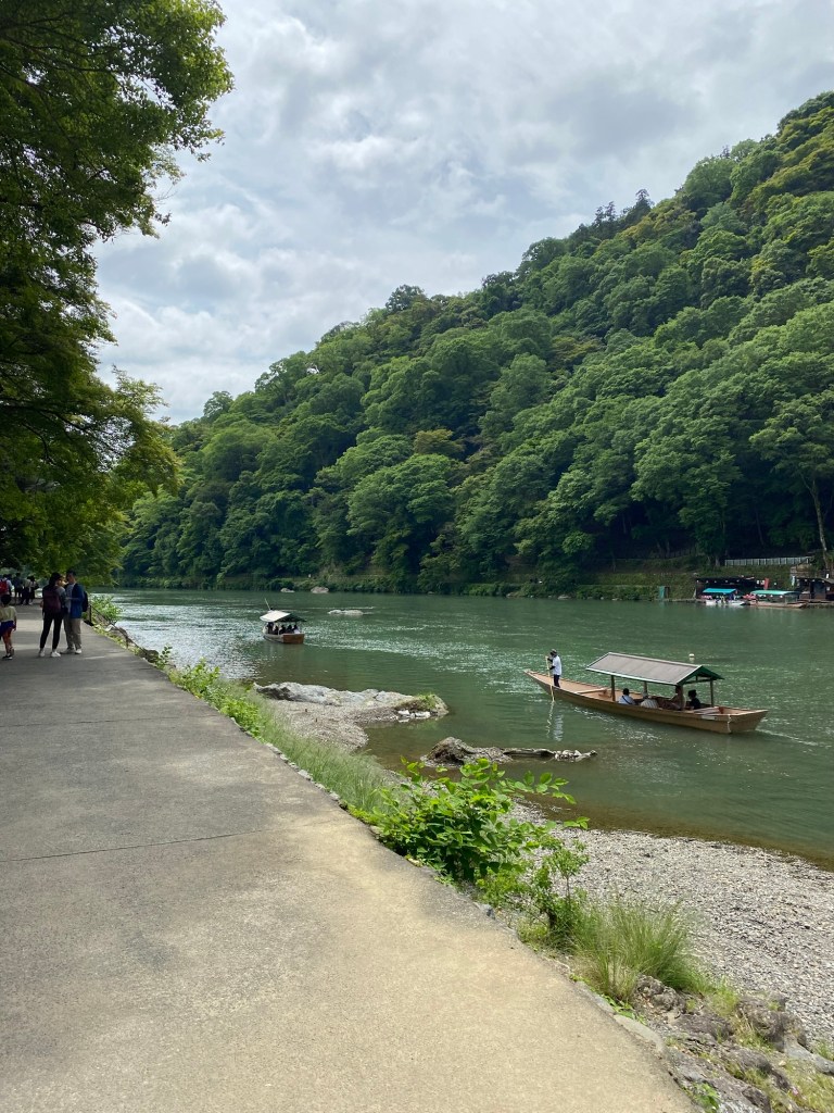 Juste à côté de la forêt de bambous se trouve le Parc d’Arashiyama, qui est également très joli. Depuis le sommet de la colline du parc, on a une superbe vue sur la rivière, dont l’eau est d’un bleu transparent. C’est magnifique !