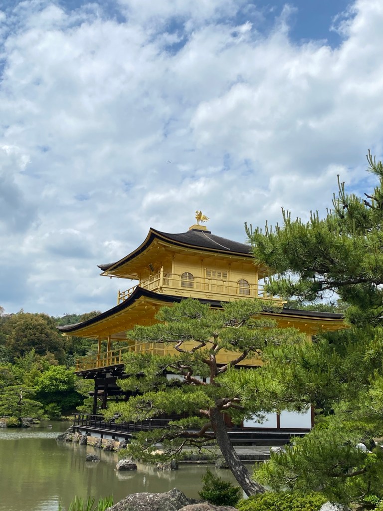 Une fois notre balade à Arashiyama terminée, nous avons pris un bus pour nous rendre au Temple d’Or, ou Kinkaku-ji. Ce temple est absolument sublime : il est entièrement recouvert d’or, et le lac ainsi que le jardin qui l’entourent sont magnifiques. Je vous le conseille mille fois, c’est vraiment le temple le plus connu et le plus impressionnant de Kyoto.