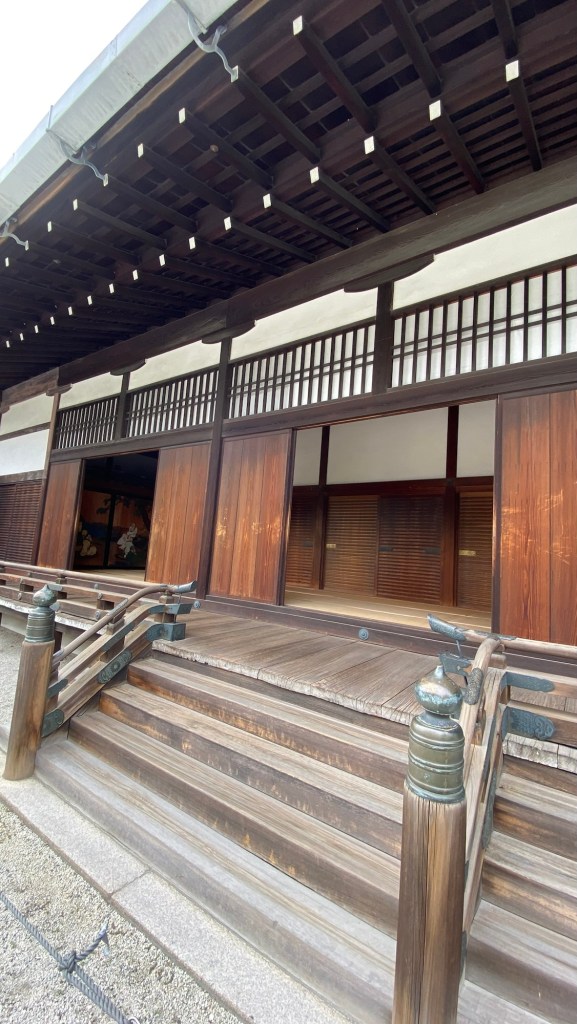 Après ce déjeuner rapide, nous sommes partis explorer le Palais Impérial de Kyoto. L’entrée est gratuite, et c’est très pratique : des QR codes sont disponibles près de chaque bâtiment pour accéder à un audioguide. Les bâtiments sont vraiment imposants et les cours sont immenses. C’est un lieu qui respire l’histoire et la grandeur.