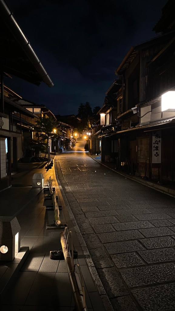 Nous avons exploré les petites ruelles des geishas ainsi que les différentes rues principales. De jour, elles sont bondées, mais de nuit, elles étaient étonnamment calmes et tranquilles. C’était une tout autre expérience, beaucoup plus intime.