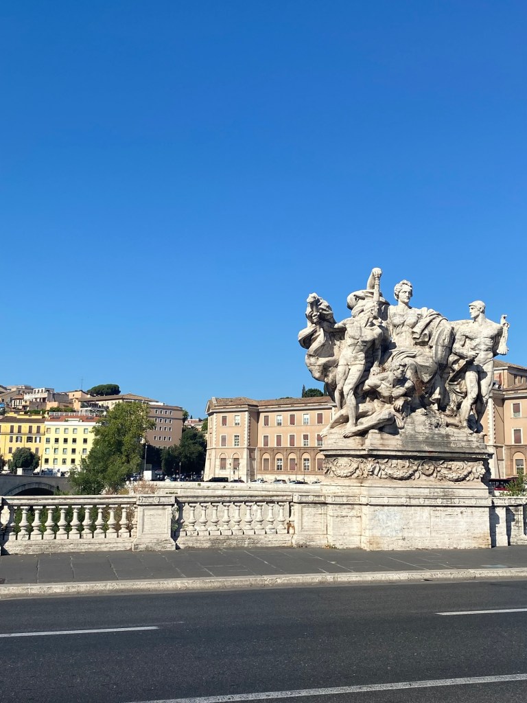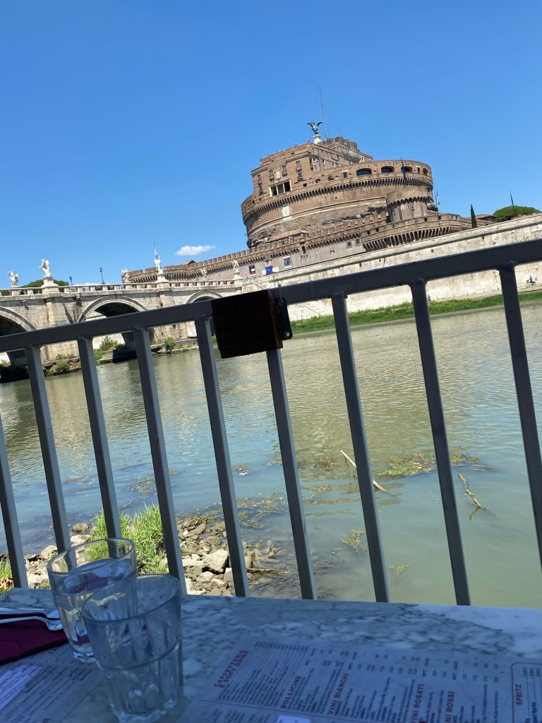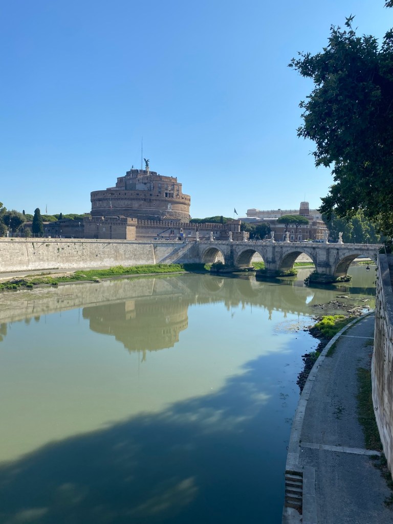 Pour y aller, on a longé les bords du Tibre, ce fleuve qui traverse Rome et lui donne tout son charme. La balade était vraiment agréable, même avec la chaleur : le fleuve apporte un peu de fraîcheur, et le chemin est bordé de superbes ponts, tous différents les uns des autres, avec leurs statues, leurs arches en pierre, et cette atmosphère typiquement romaine.