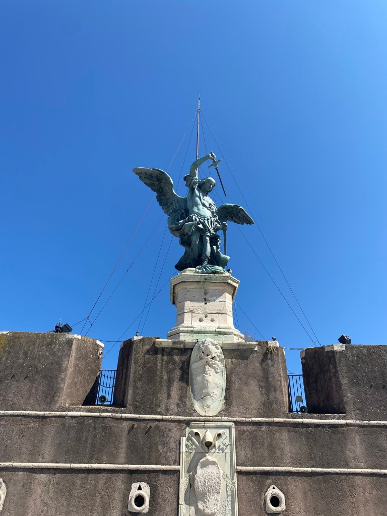 Jusqu’à ce qu’on arrive enfin devant le grand Château Saint-Ange, imposant et majestueux. Juste devant, on découvre le Ponte Sant’Angelo, l’un des plus beaux ponts de Rome, orné de statues d’anges sculptées par les élèves du Bernin.