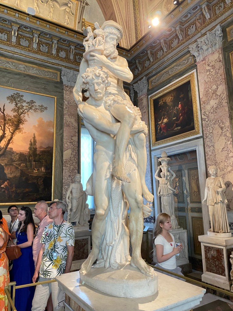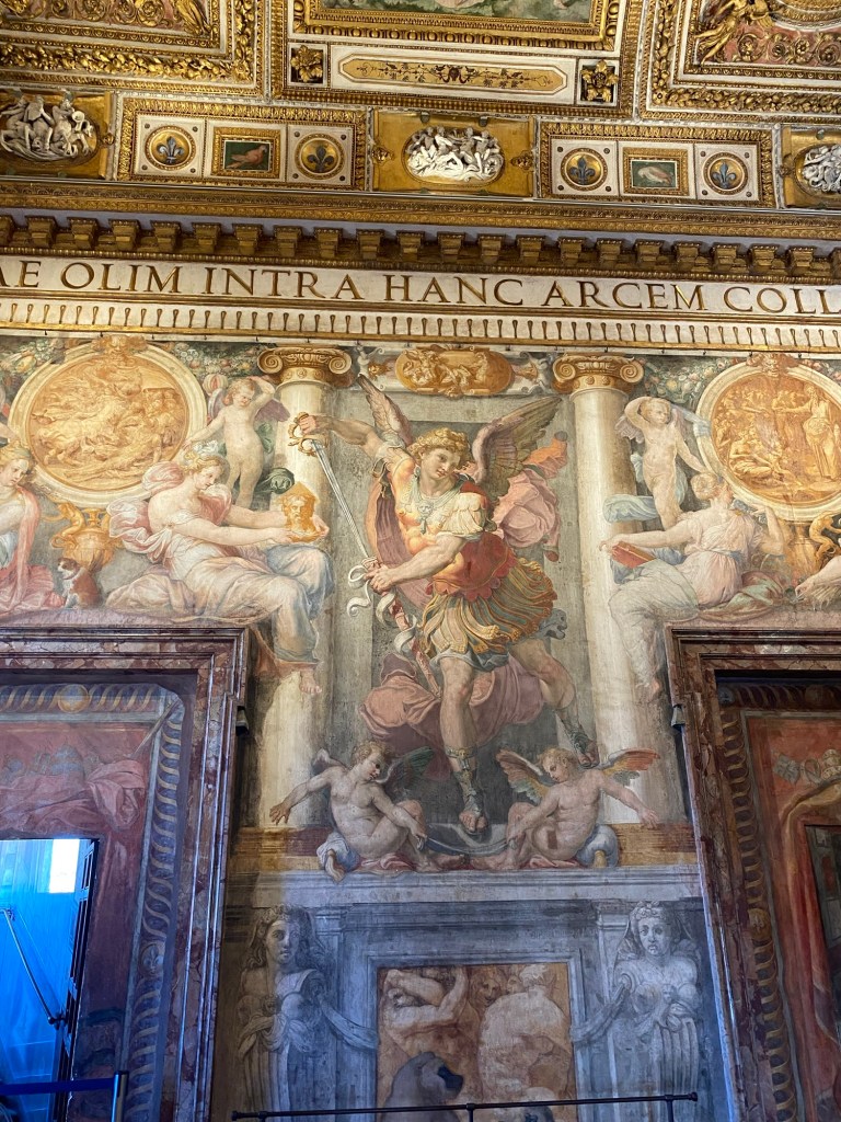 Mais ce qui nous a le plus impressionnés, ce sont les plafonds richement décorés, peints par des artistes de la Renaissance, dont certains étaient des élèves ou apprentis de Michel-Ange ! On sent vraiment le niveau de détail, la précision, et cette volonté de grandeur typique de l’époque.