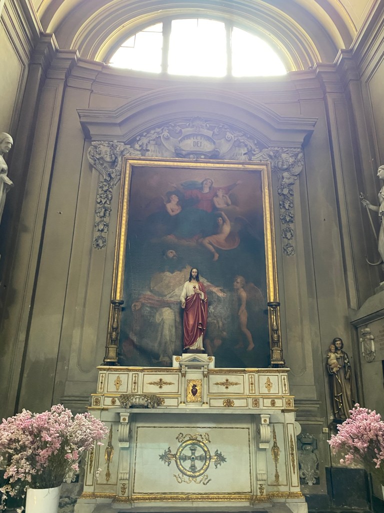 Ensuite, on est allés visiter une église qu’on n’avait pas pu voir la veille, car Lorine devait porter un t-shirt pour pouvoir y entrer 🙄.