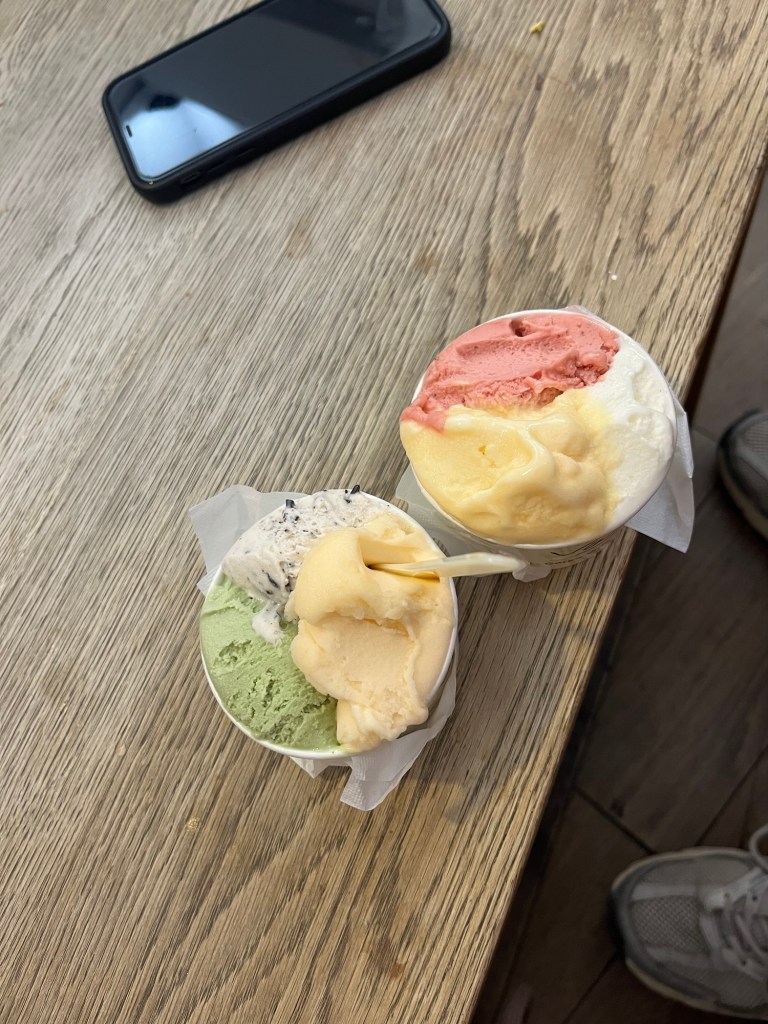 Après cette visite dans ce très joli musée, nous partons à la recherche d’une glace. Nous trouvons un glacier très bien noté, 4,9 étoiles, et on comprend vite pourquoi : les glaces étaient vraiment fabuleuses, avec des saveurs incroyables.