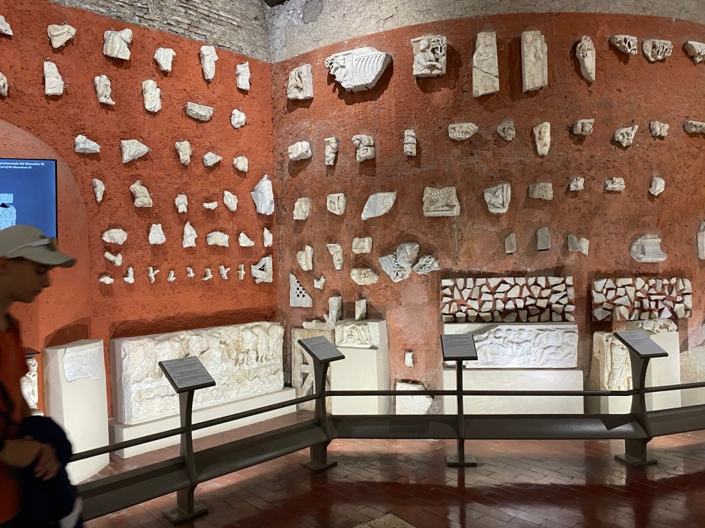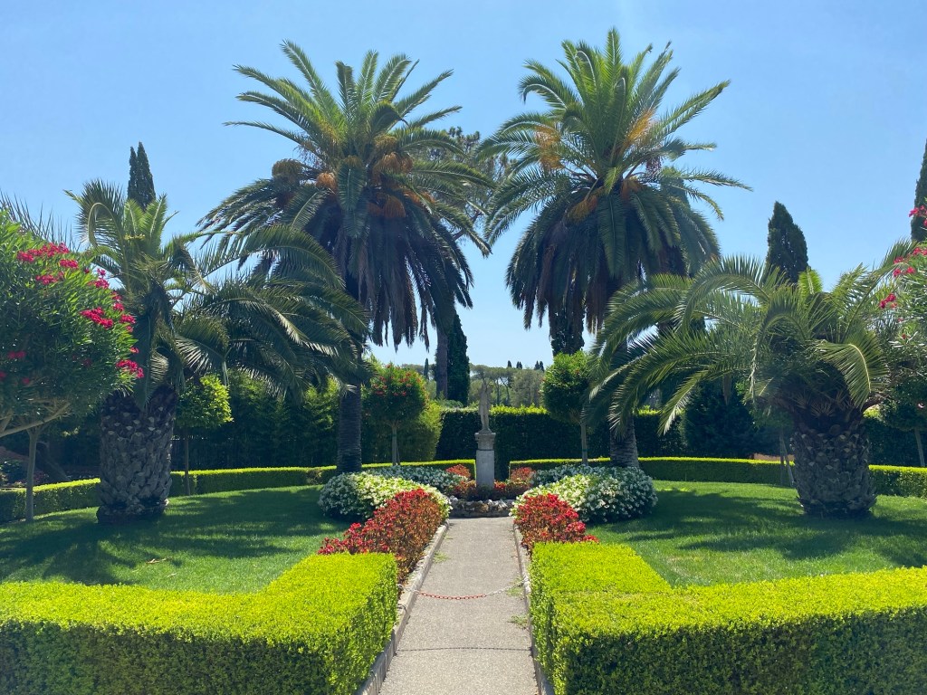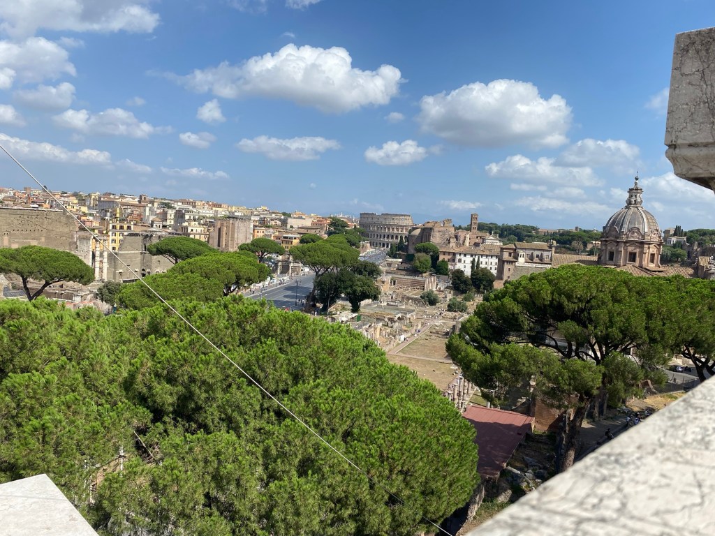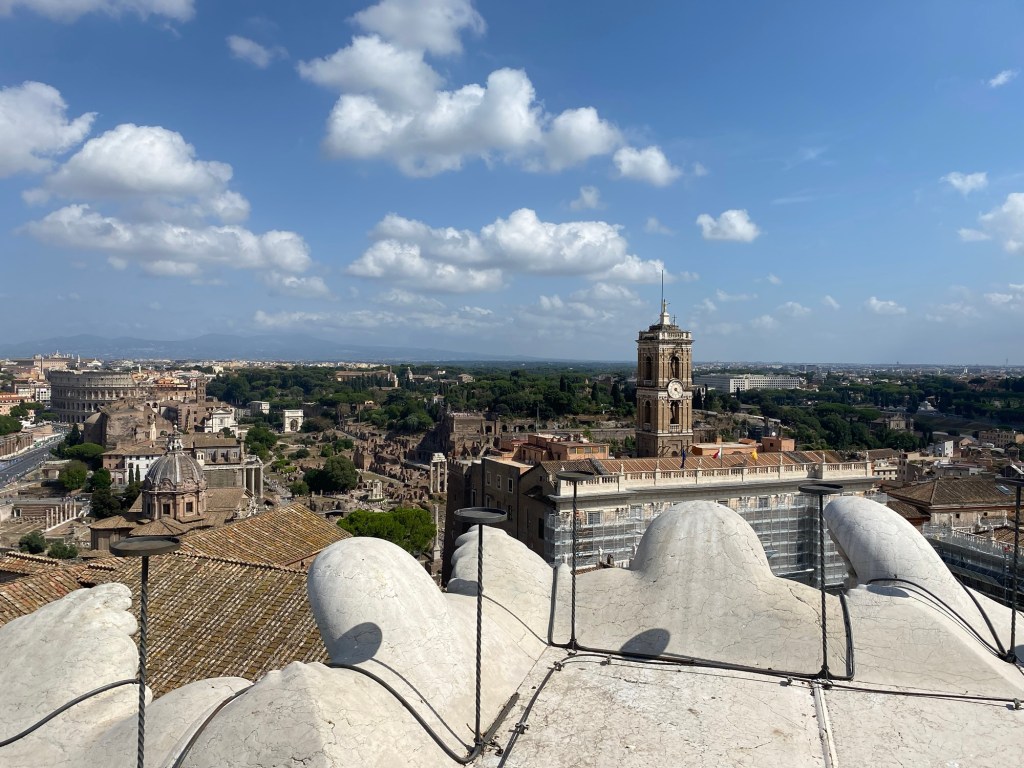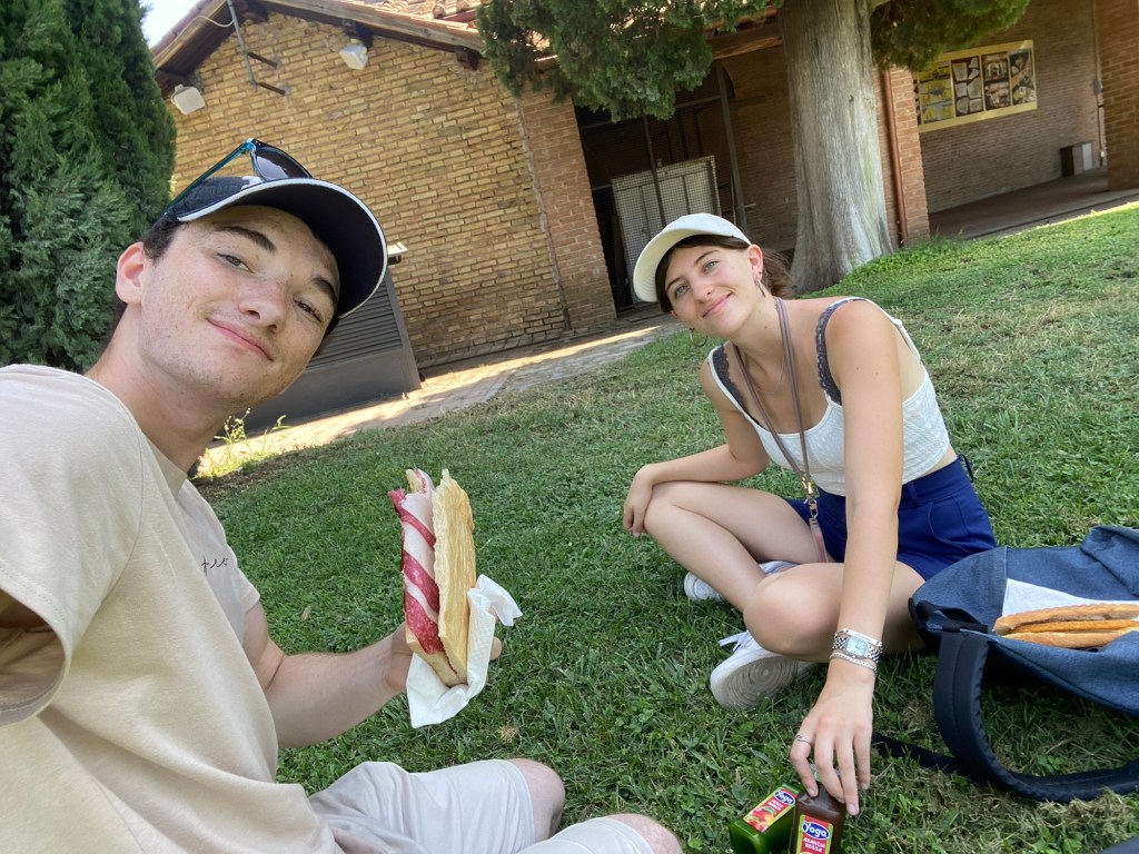 Une fois arrivés là-bas, on commence une petite promenade sous le beau soleil romain — qui tape fort, comme toujours 😅.