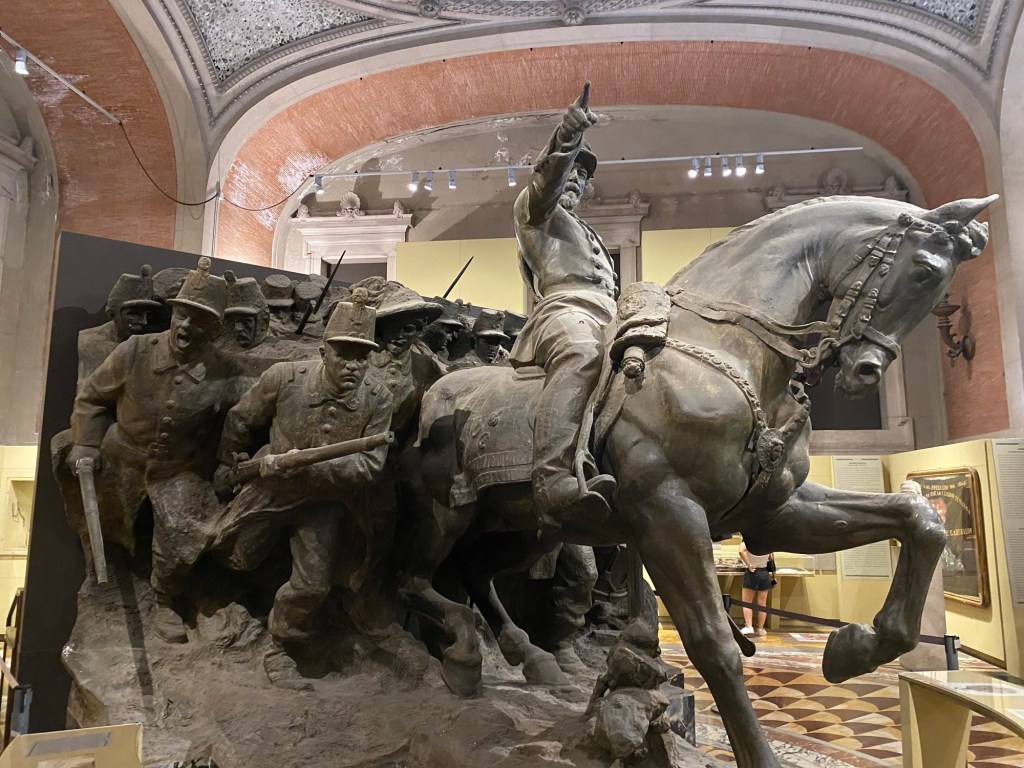 À l’intérieur, se trouve un musée dédié à l’histoire militaire italienne, où l’on peut admirer de nombreux drapeaux italiens ainsi que des statues représentant des héros et des scènes de guerre. Ce musée retrace les différentes campagnes militaires de l’Italie et rend hommage aux soldats qui ont servi le pays.