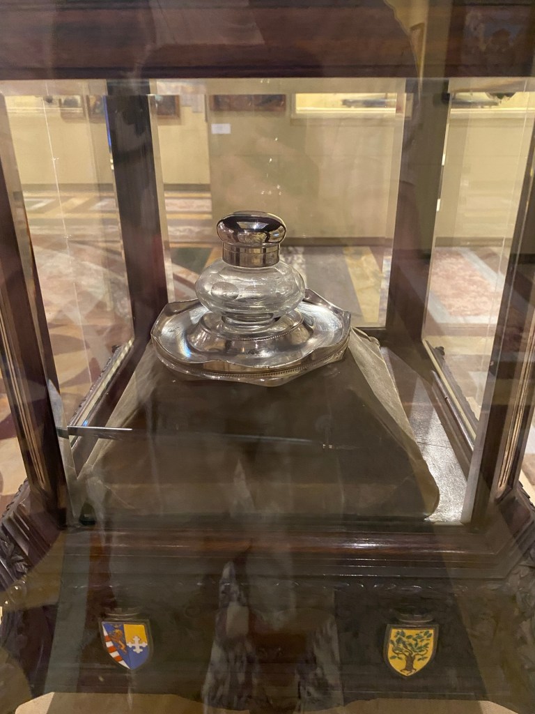 On y trouve aussi l’encre et la plume qui ont servi à signer l’armistice de 1918, marquant la fin de la Première Guerre mondiale. Ces objets historiques sont précieux et symbolisent un moment clé de l’histoire italienne et mondiale.