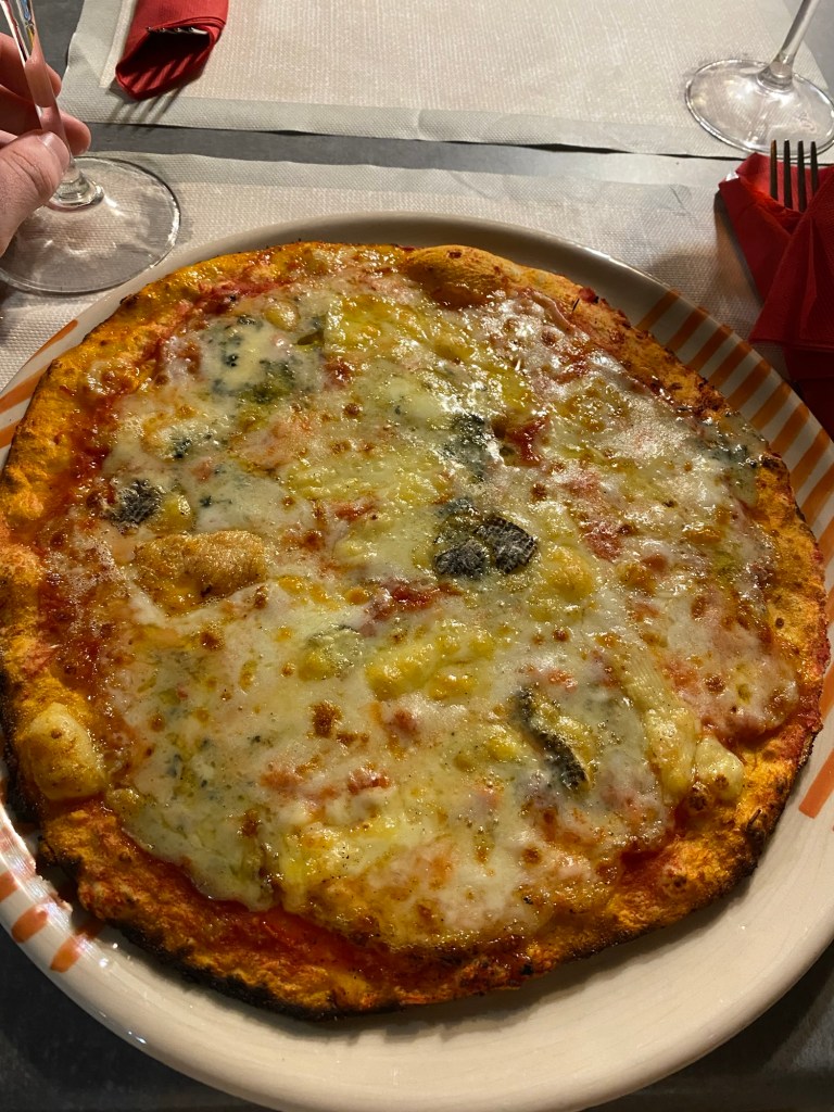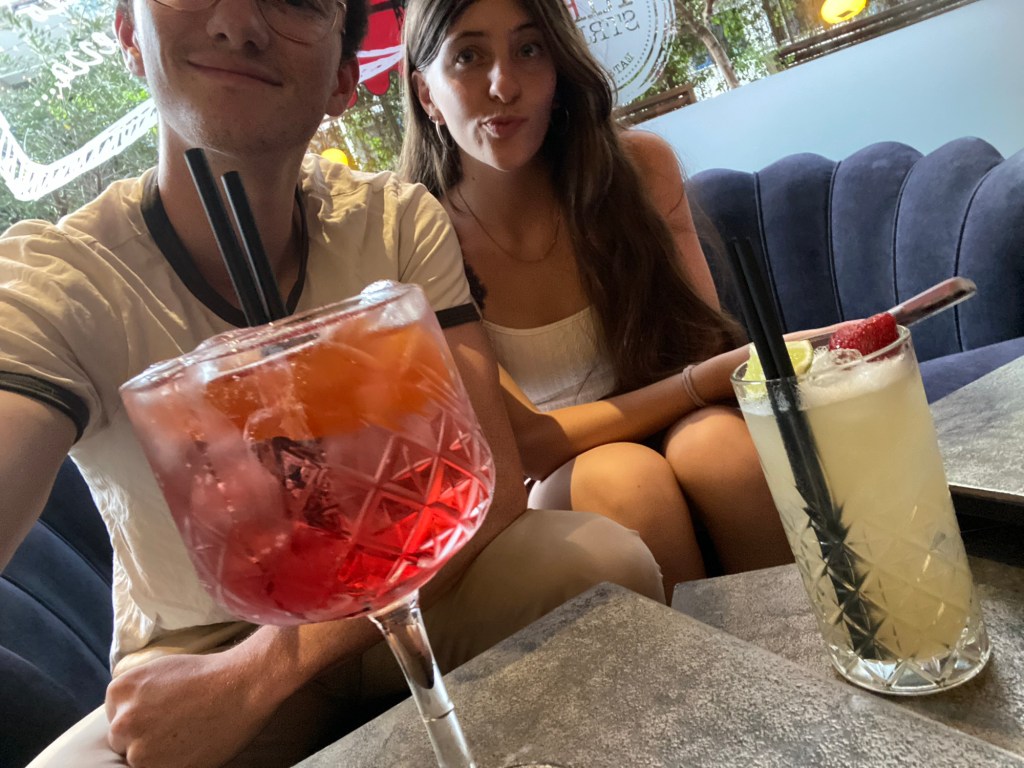 Après ce bon cocktail bien chargé, on est partis pour la toute première pizzeria qu’on avait repérée à notre arrivée. Les prix sont vraiment abordables. J’ai pris une pizza, Lorine a choisi des pâtes, et franchement, la pizza était délicieuse, parfaite même !