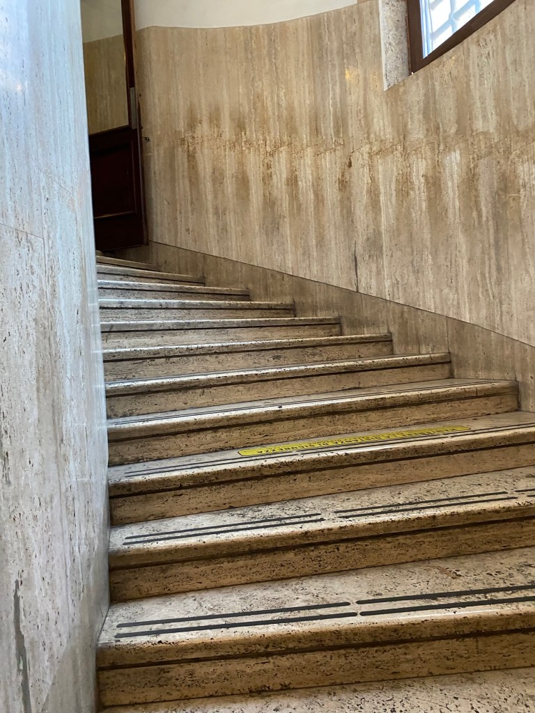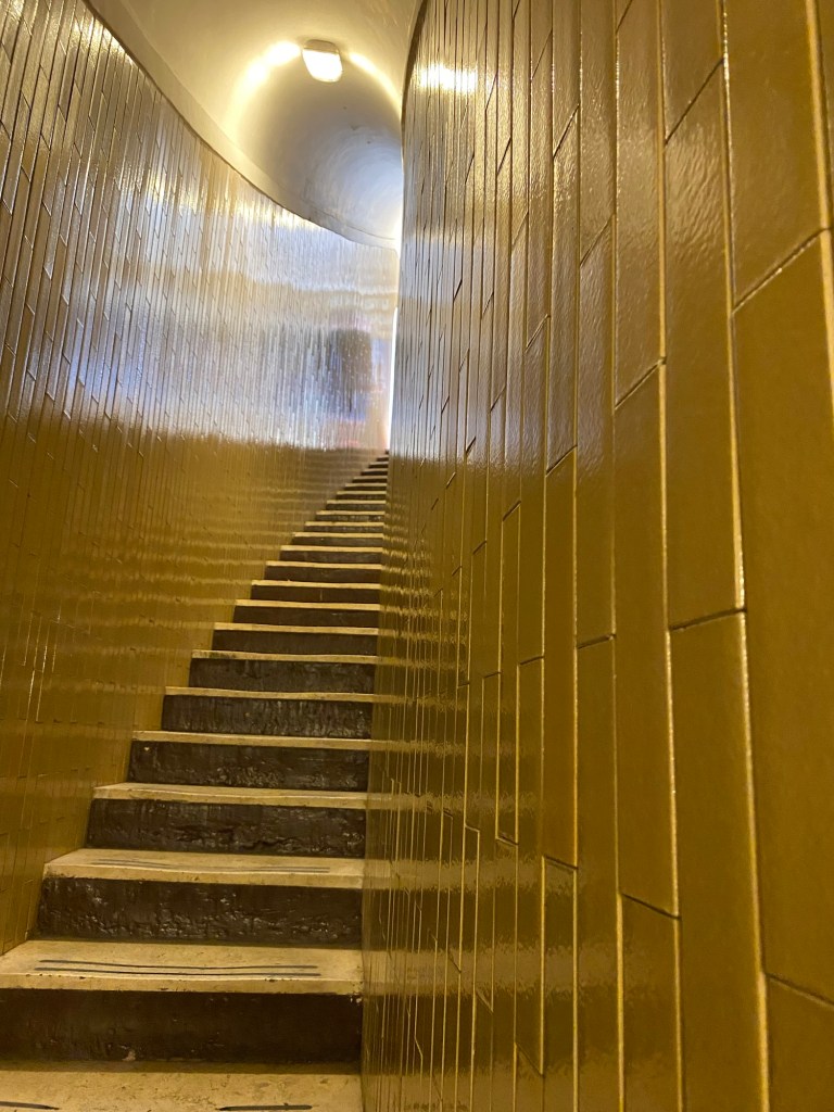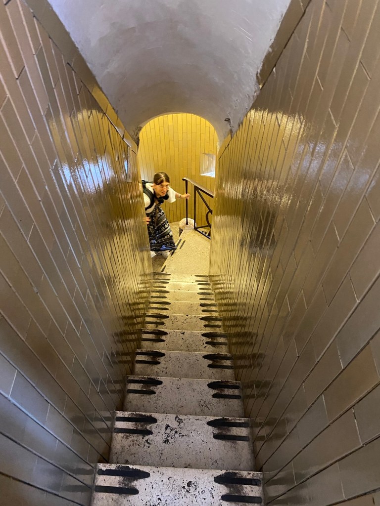 Il faisait vraiment trĂšs chaud, et plus on montait, plus la tempĂ©rature augmentait. Lâair devenait Ă©touffant Ă mesure que lâon gravissait les marches. Les escaliers Ă©taient de plus en plus Ă©troits, et Ă un moment donnĂ©, ils suivaient lâinclinaison de la coupole, ce qui donnait une impression Ă©trange mais amusante â on avait presque lâimpression de pencher avec le bĂątiment.