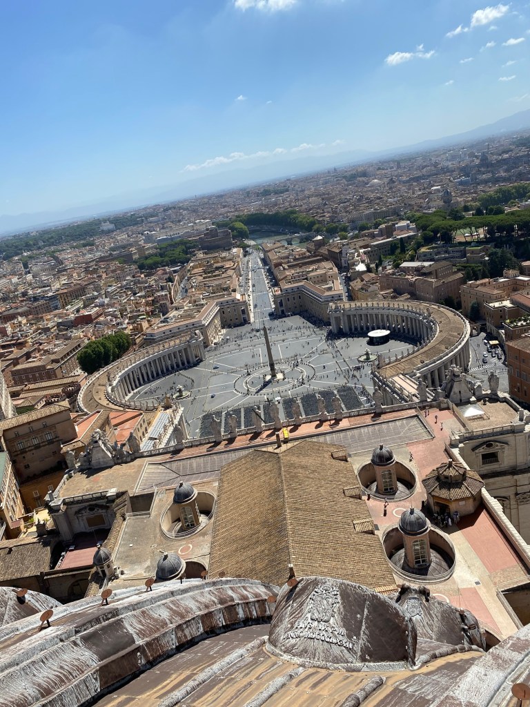 Une fois cette magnifique vue admirĂ©e, nous redescendons pour prendre un cappuccino sur le toit de la basilique Saint-Pierre đ€Ł.