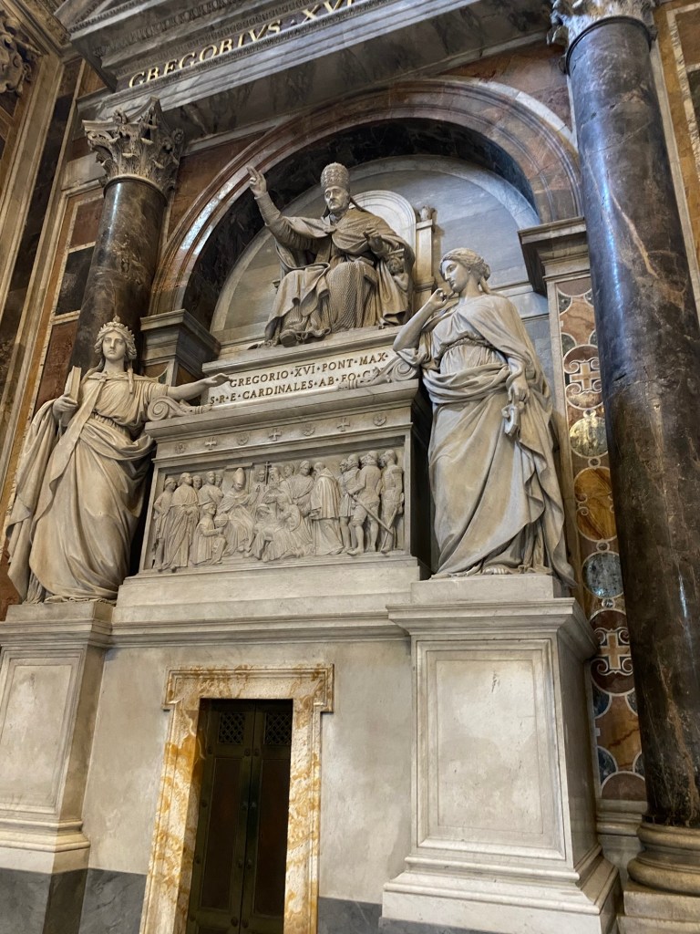 Nous avons Ă©galement pu voir de nombreuses statues de papes dissĂ©minĂ©es dans toute la basilique. Certaines sont monumentales et trĂšs impressionnantes, reprĂ©sentant les papes dans des poses solennelles, entourĂ©s dâanges ou de symboles religieux. Dâautres sont plus modestes, mais toutes participent Ă lâatmosphĂšre sacrĂ©e du lieu et rappellent lâhistoire longue et riche de la papautĂ©.