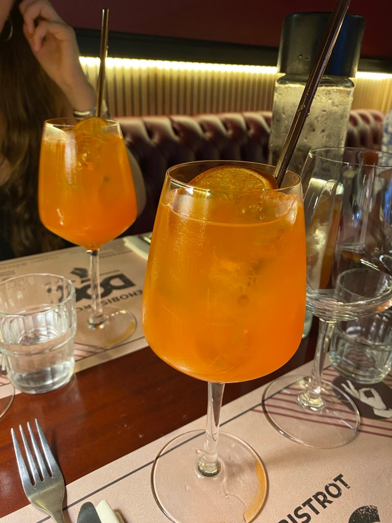 Au restaurant, nous avons commencĂ© par deux Spritz Ă la passion. Lâassociation entre lâamertume du Spritz traditionnel et la douceur exotique du fruit de la passion Ă©tait tout simplement parfaite. Un vrai cocktail de plaisir, frais et bien Ă©quilibrĂ© !