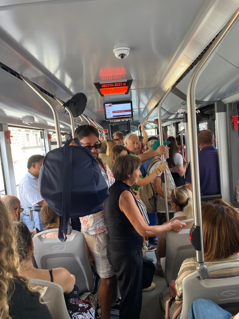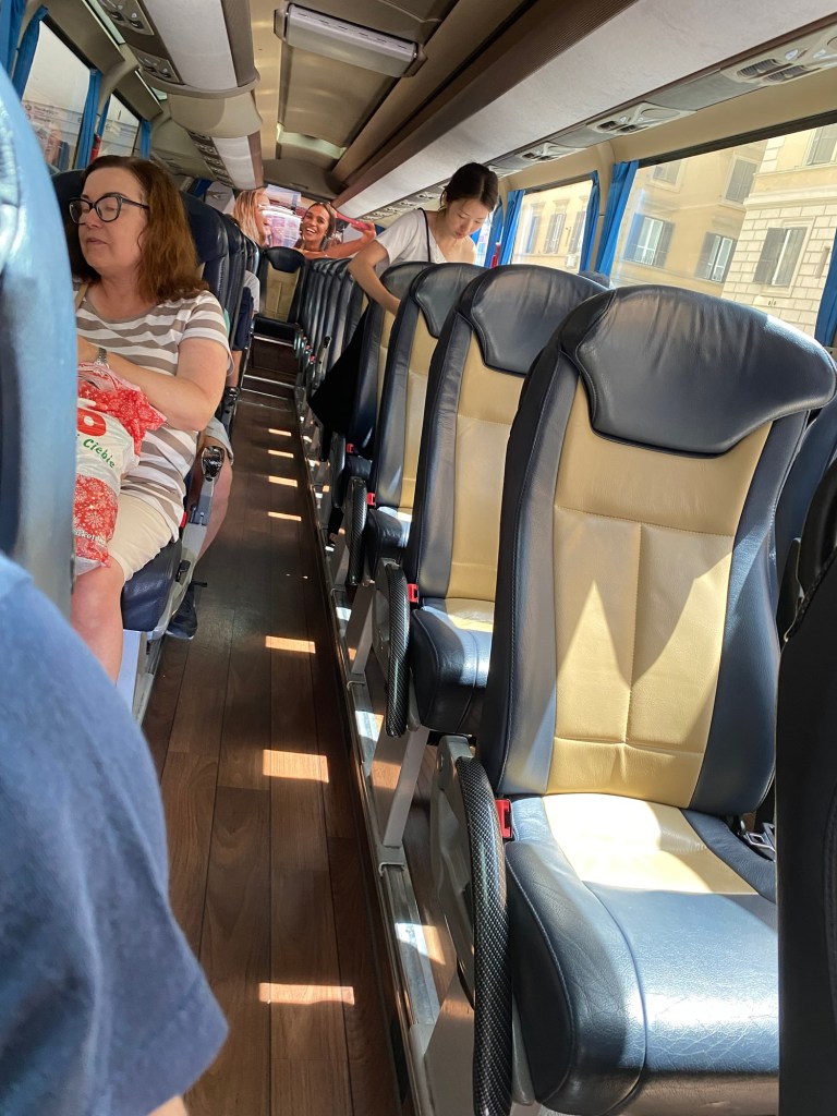 Il est maintenant midi, et nous attendons notre bus pour rejoindre la gare de Termini, là où se trouvent les navettes qui nous emmèneront à l’aéroport de Fiumicino.