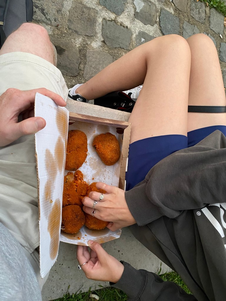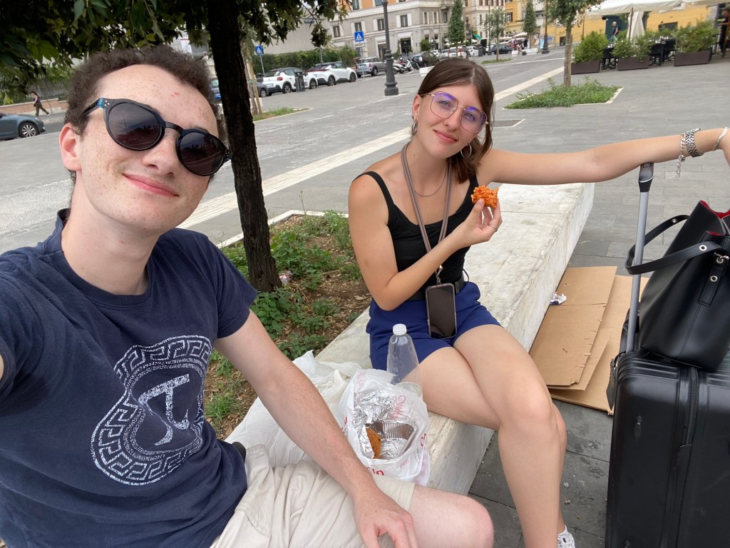 Il est maintenant 13 heures, et on décide de manger les supplì qu’on avait achetés ce matin en sortant de l’hôtel. Une petite pause bien méritée avant de continuer notre trajet !